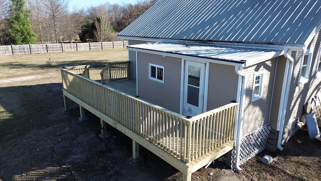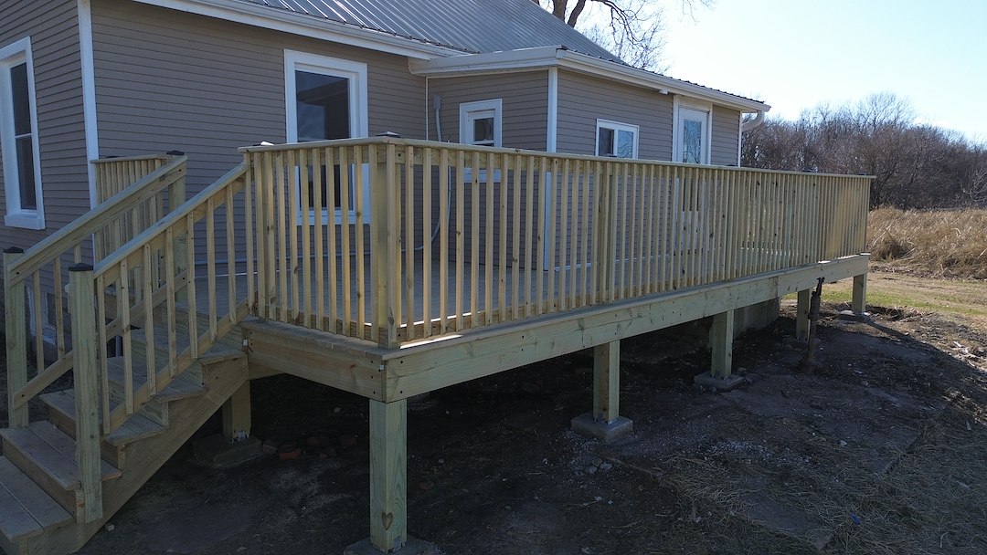 We recently completed a custom wood deck construction project in Chilhowee, Missouri, designed to expand usable outdoor living space and improve backyard accessibility.